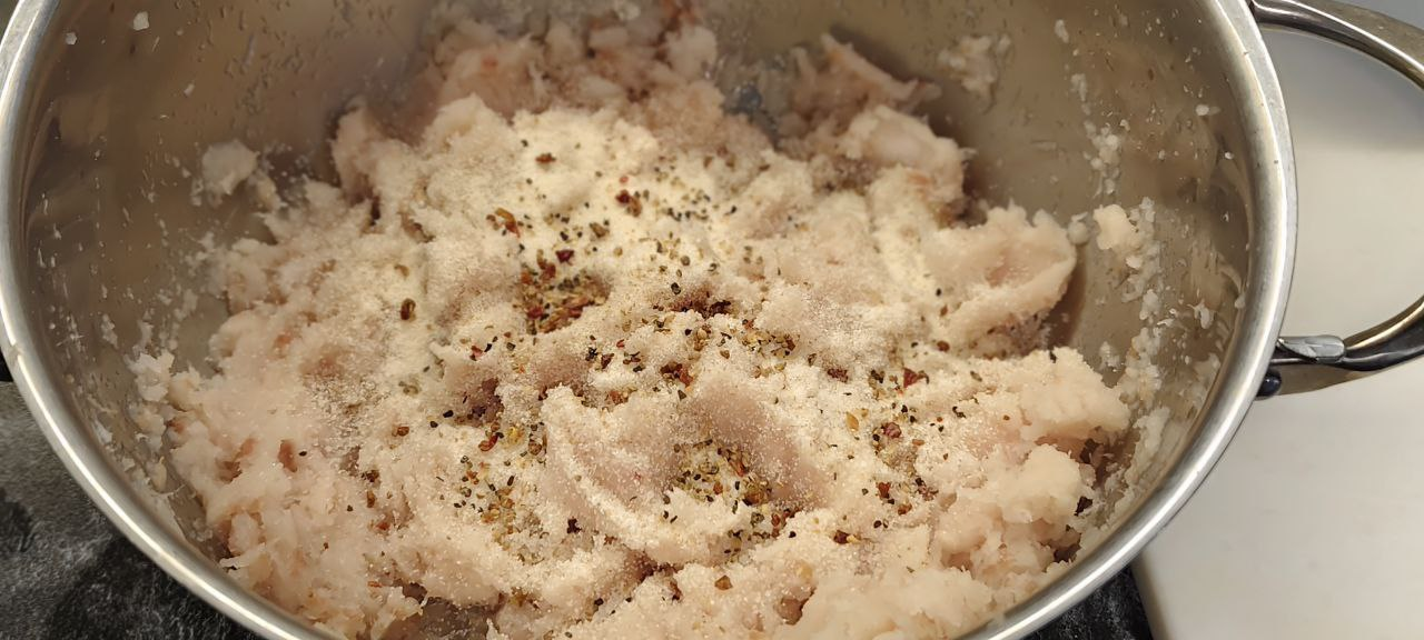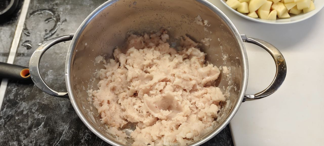 Размороженное филе пробиваю погружным блендером