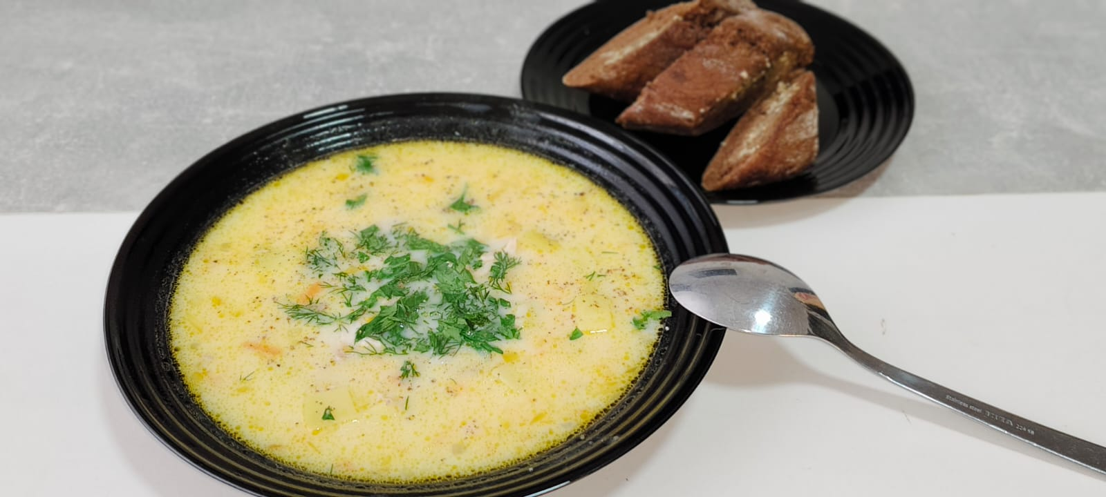 Готовый суп разливаю по тарелкам. Добавляю зелень и черный перец. Нарезаю чесночный багет. Это вкусно!