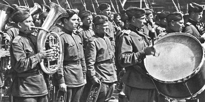 Красная армия разгромила вермахт и завершила войну в Берлине. И теперь на каждом параде 9 мая на Красной площади играет военный оркестр. Не стоит забывать, что он отдаёт дань музыкантам времён войны, внёсшим свой вклад в Победу.