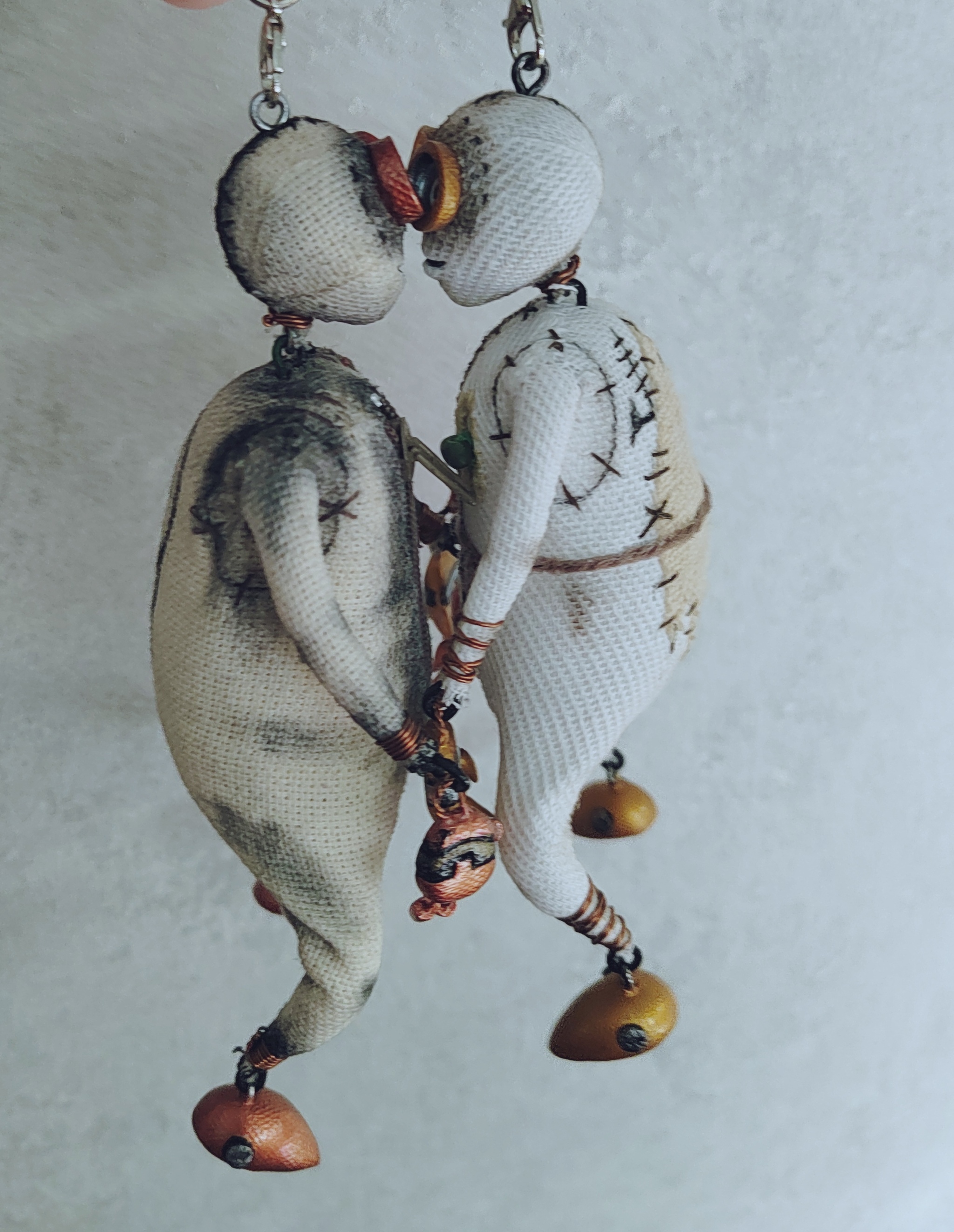 Это пара. Брелоки 9 + 7 выполнены на заказ. В смешанной технике. Подвижные. Рост 10-13см. Материал: проволока, пряжа, двунитка, джинса, полимерная глина, пастель, акриловая краска, лак и частичка души. Замечательный подарок на любой праздник.