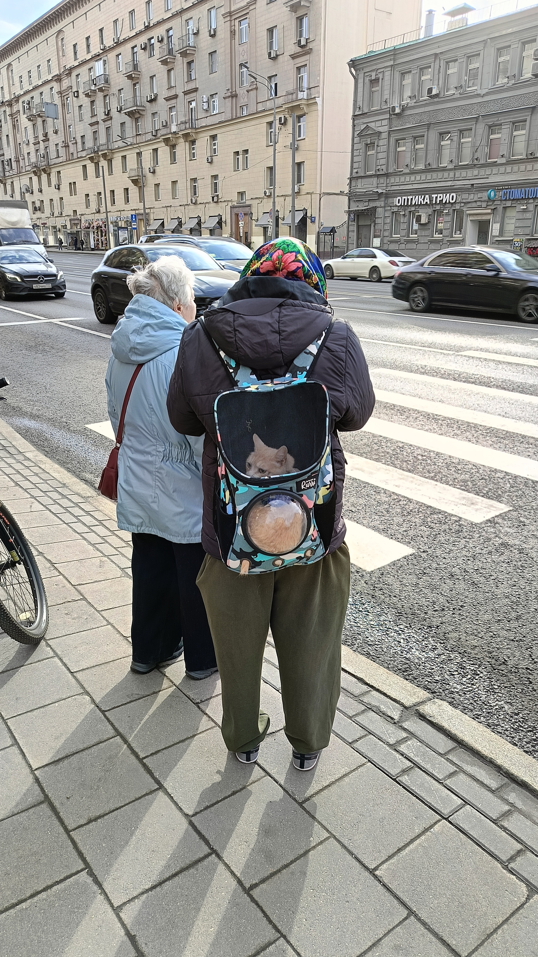 Иду сегодня по улице, слышу откуда-то мяуканье, а впереди тётя с рюкзаком, а внутри котэ.