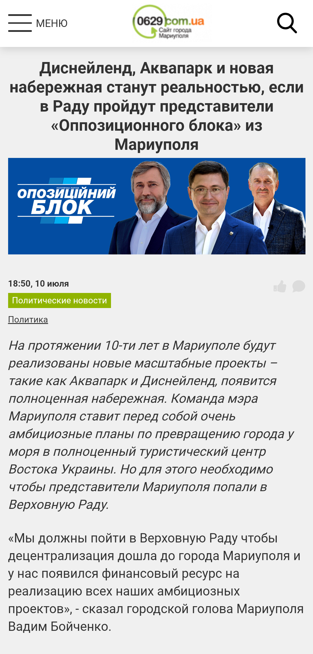 9 artyrnc Политика Мэр Мариуполя пообещал избирателям Диснейленд. 6 лет назад Тем временем маразм крепчал. В/На Украине происходит вот такая фигня: Кто в жизни не слышал о Мариуполе: это небольшой промышленный город с населением в полмиллиона, на окраине Донецкой области. Рядом с Таганрогом. Политика Украина Выборы Донецкая область Мариуполь Маразм Длиннопост