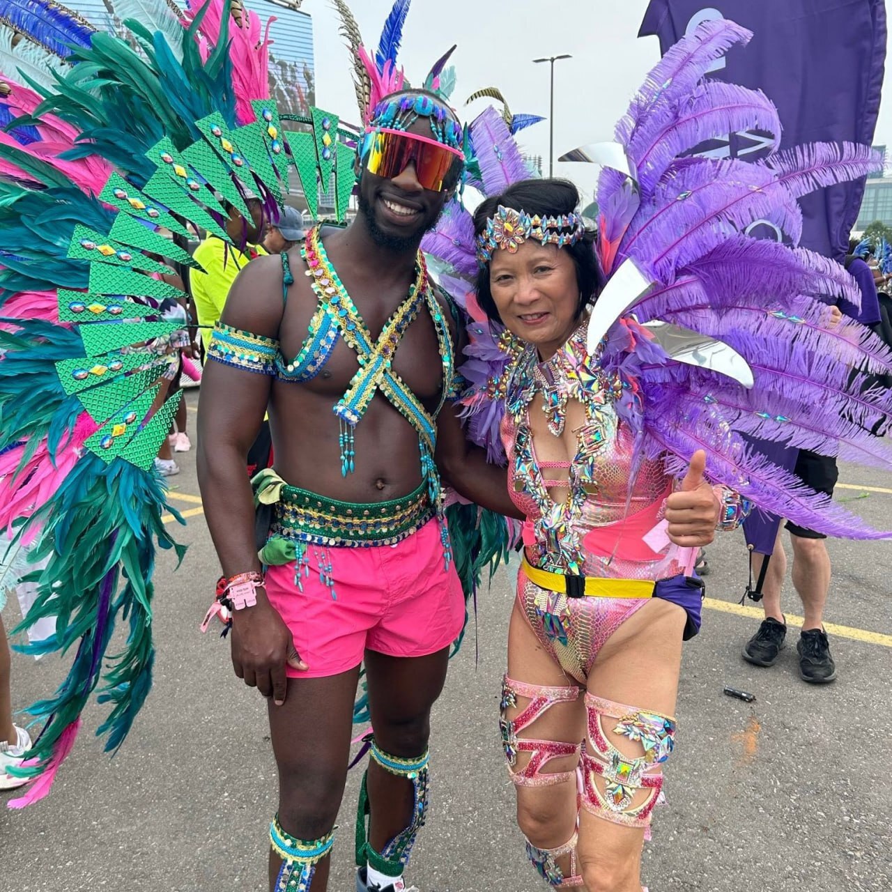 Мэр крупнейшего города этой страны Оливия Чау, 67 лет [справа на фото], принимала сегодня участие в Карибском параде*.