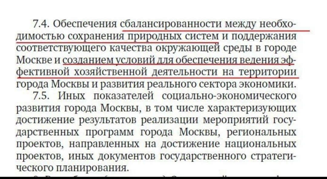 3. Конституция Российской Федерации в своей части 1 статьи 42 гарантирует каждому гражданину право на благоприятную окружающую среду, а статья 9 Конституции утверждает, что земля, её недра и другие природные ресурсы могут быть использованы только в интересах общества и с учётом охраны природы. Принятое постановление фактически противоречит этим принципам, так как допускает хозяйственную деятельность, которая может оказать существенное негативное влияние на экологическое состояние в столице.