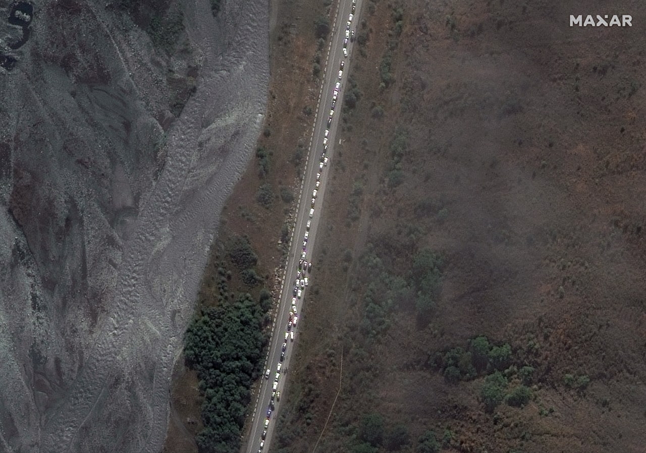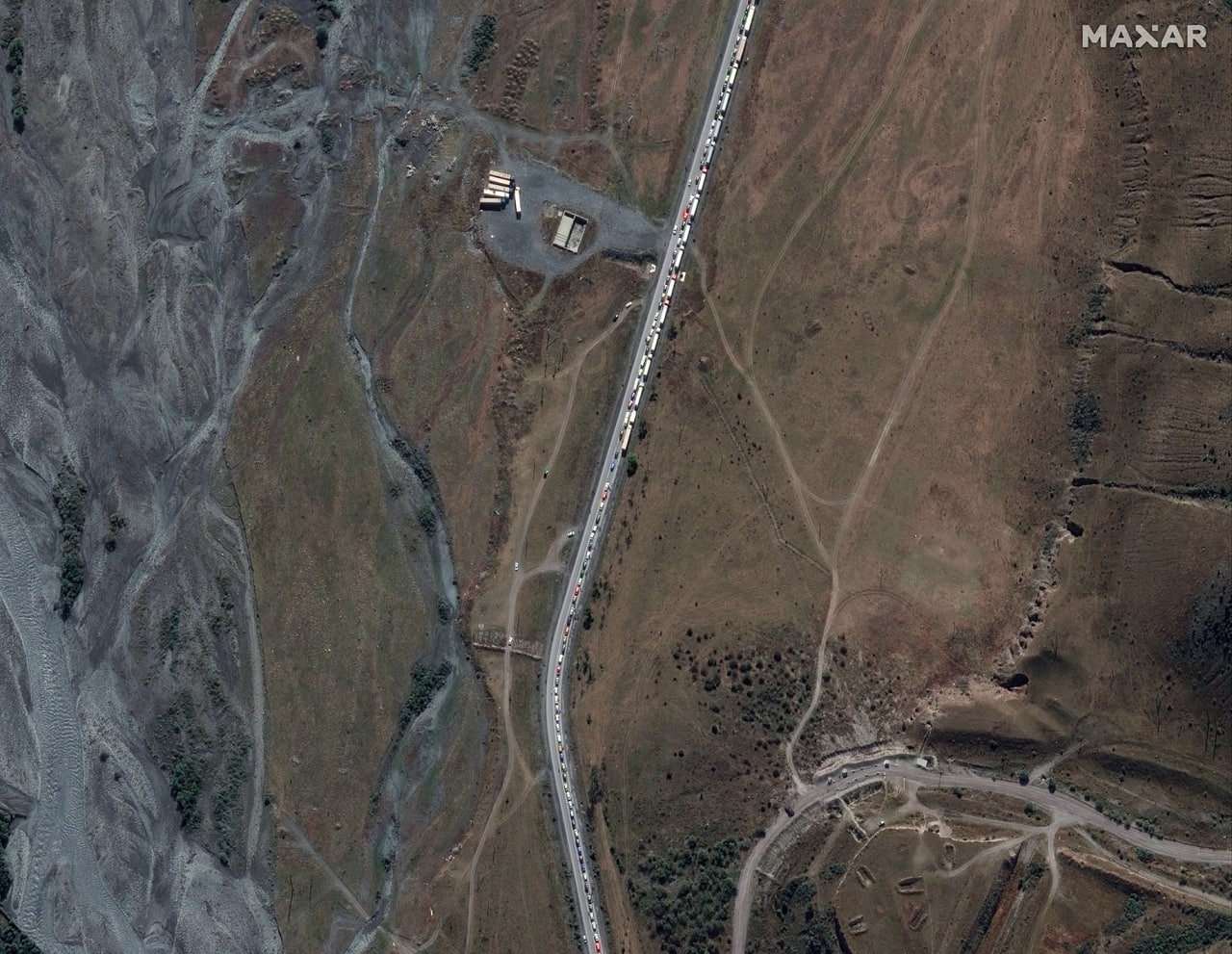 Снимки со спутника компании Maxar подъезда к пропускному пограничному пункту «Верхний Ларс» с Грузией. 25 сентября И уже сегодня новости о развёртке мобильного военкомата у кпп.