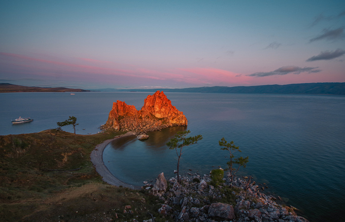Бурхан на рассвете. Скала освещена не первыми лучами восходящего солнца, а зарёй. Такие моменты мы специально подкарауливаем.