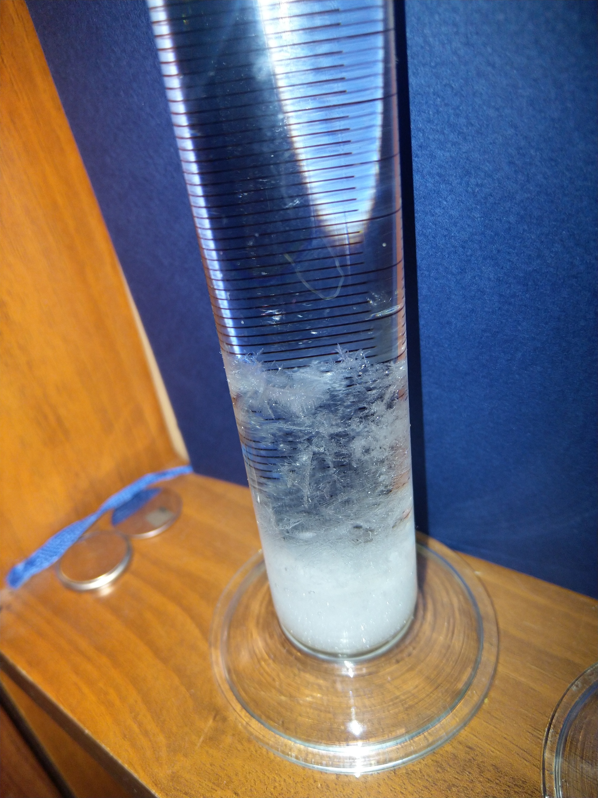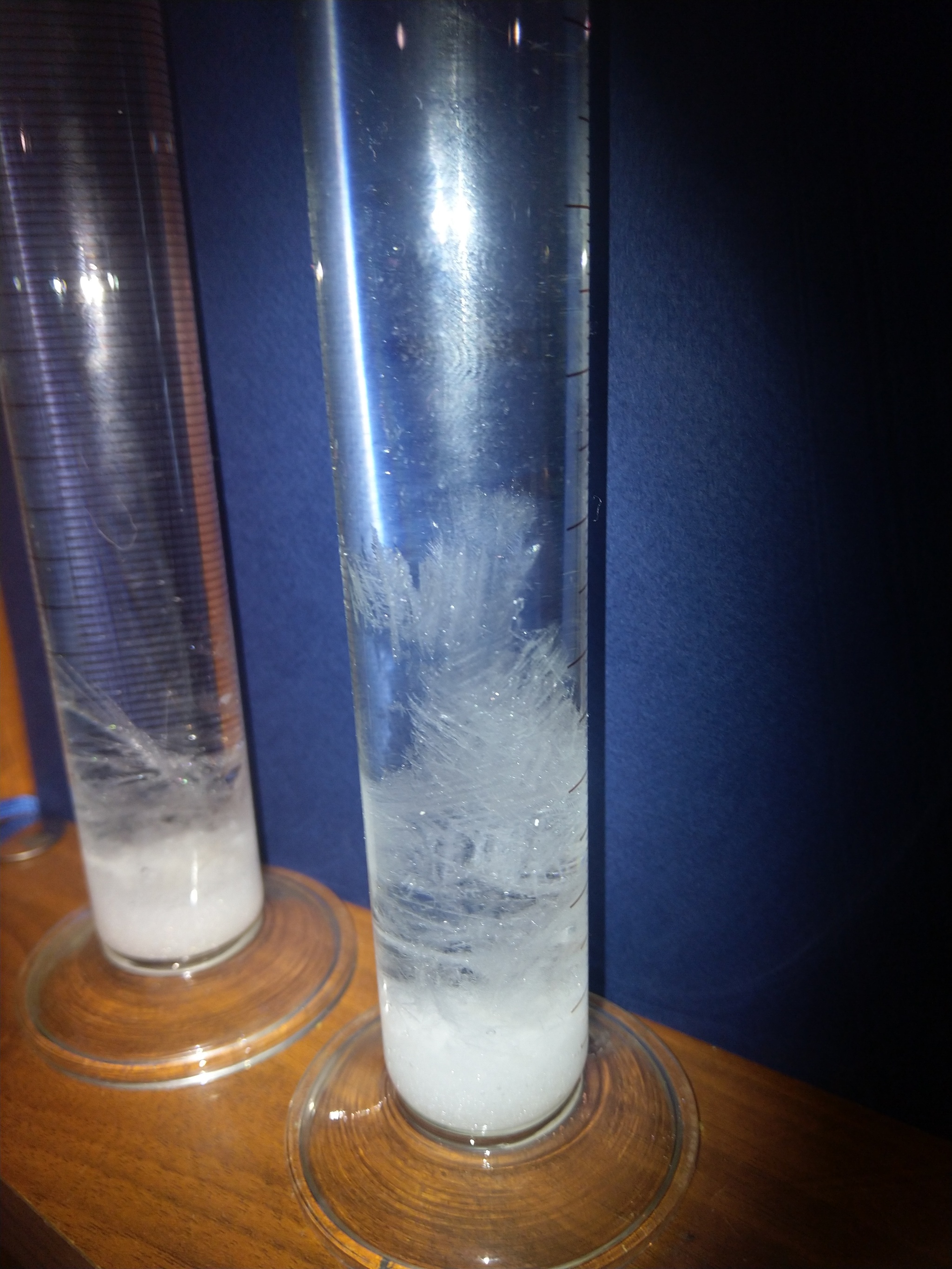 Тогда отец сделал вместе с нами несколько колб и мы радостно наблюдали за динамикой кристаллографии в растворе этилового спирта! Это было супер следить за погодой и отслеживать кристаллы в колбе.