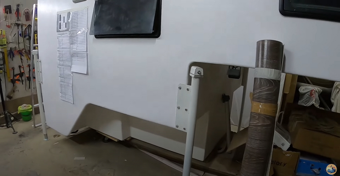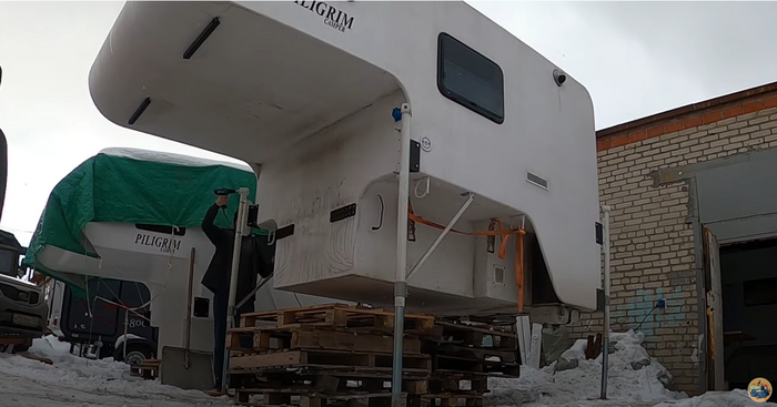 Обычно на даче у себя я храню на козлах, которые такой же высоты как и кузов пикапа, поэтому просто подставляю их под модуль и опускаю на них его. Быстро и надежно. Но тут нет моих козлов, поэтому пришлось городить поддоны.