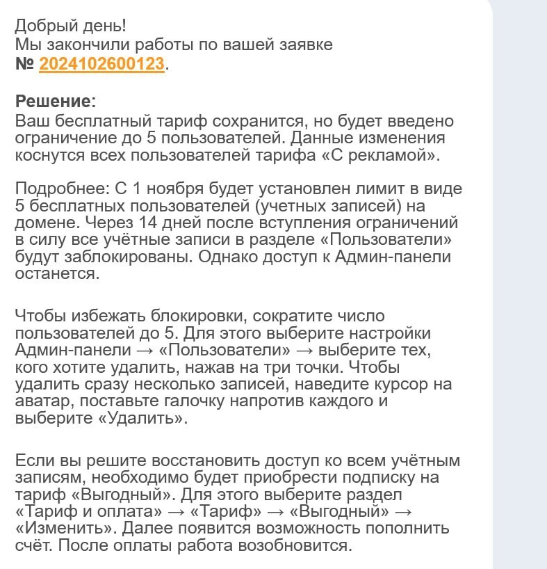 Заявка в тех поддержку, вот я тебе скрин предоставил. Вот еще описание тарифов https://biz.mail.ru/docs/saas/tariffs-bills/tariffs/index.ht...