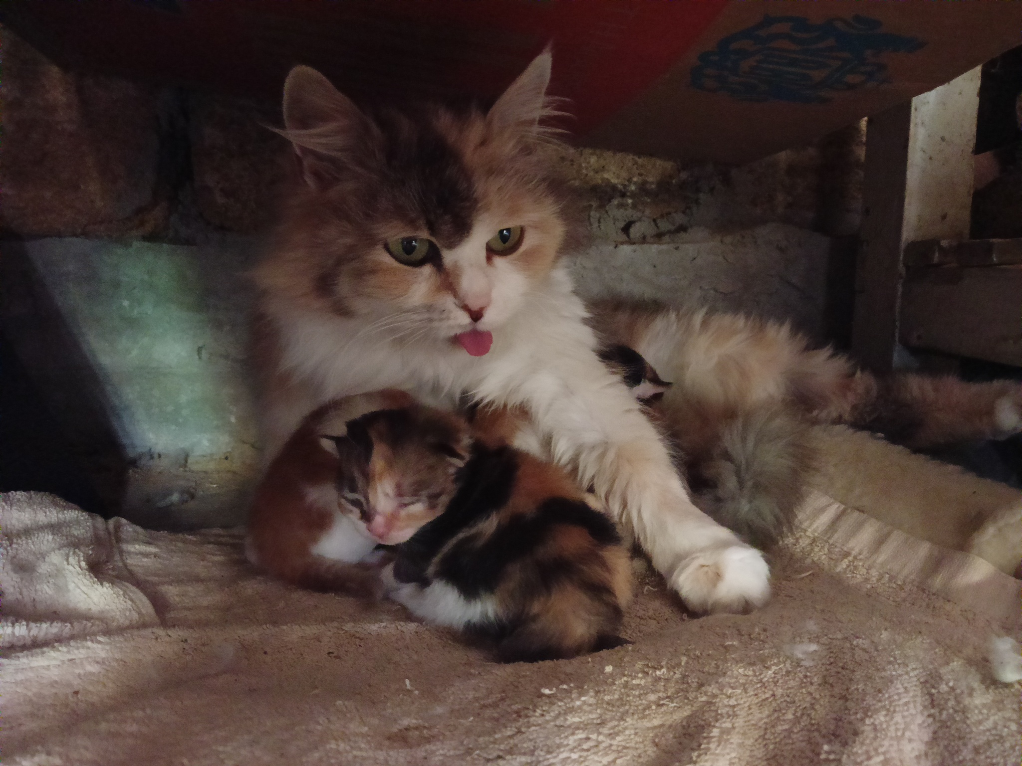Через какое-то время она пропала, а потом принесла уже взрослых котят мне под окно. Котят раздали. Через время она опять «принесла в подоле» уже в кустах под окном.