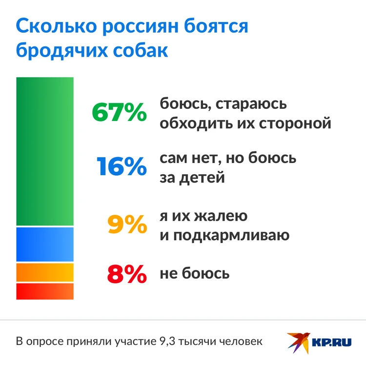 А вот еще 9% заявили, что бродячих собак не боятся, а жалеют, и, по возможности, подкармливают.