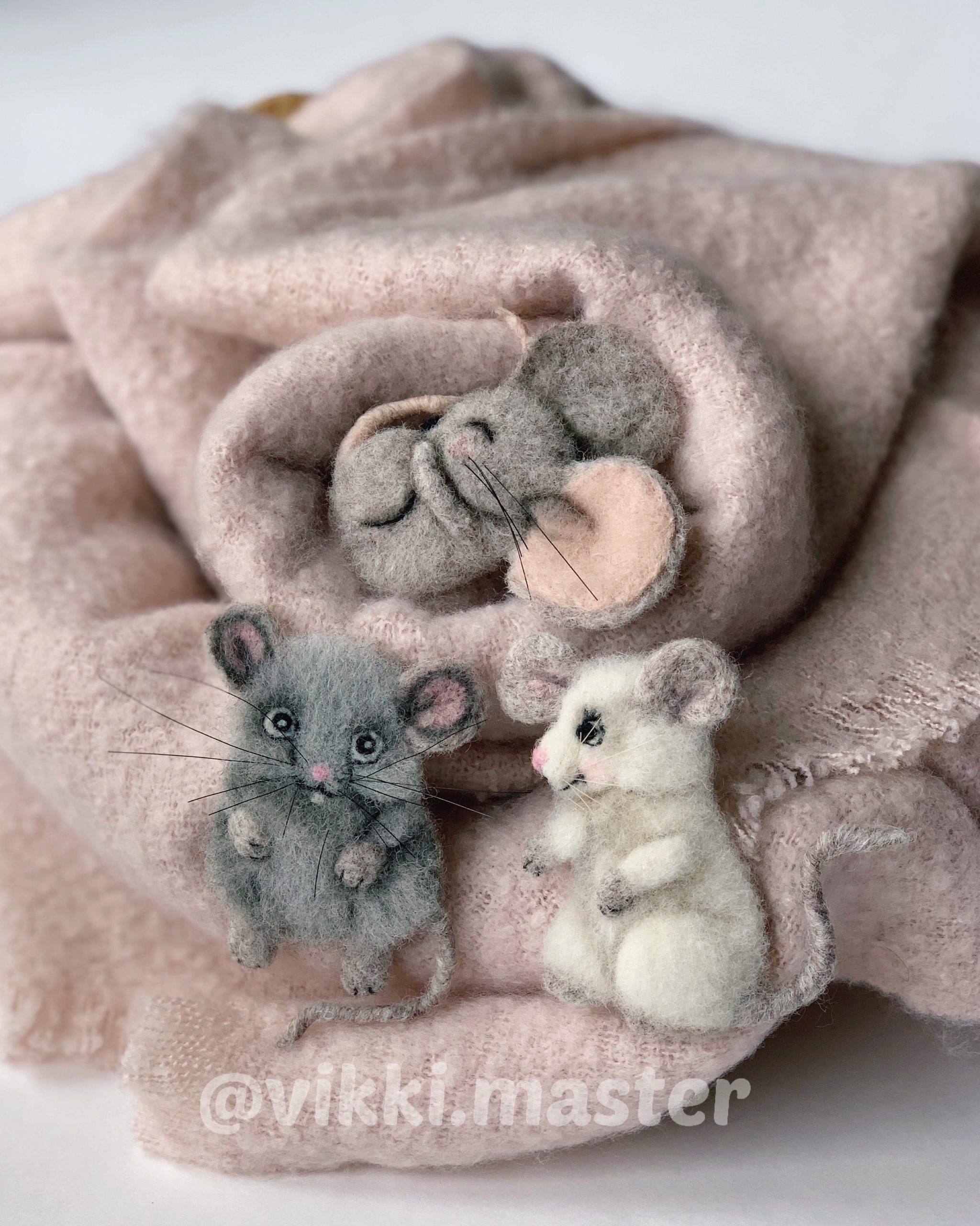 Выполнены в технике сухого валяния. Длина примерно 8,5 см вместе с ушками.