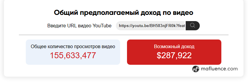 К примеру расчет по данному ресурсу, а данный ролик размножен и на других каналах ЮМГ и площадках: RuTube, ВК, ОК....