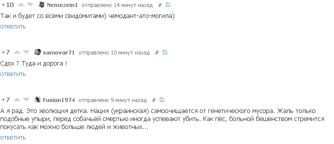 Именно поэтому, я минусю посты с ненавистью к украинцам. Укров, которые ненавидят русских минусуют и без меня.