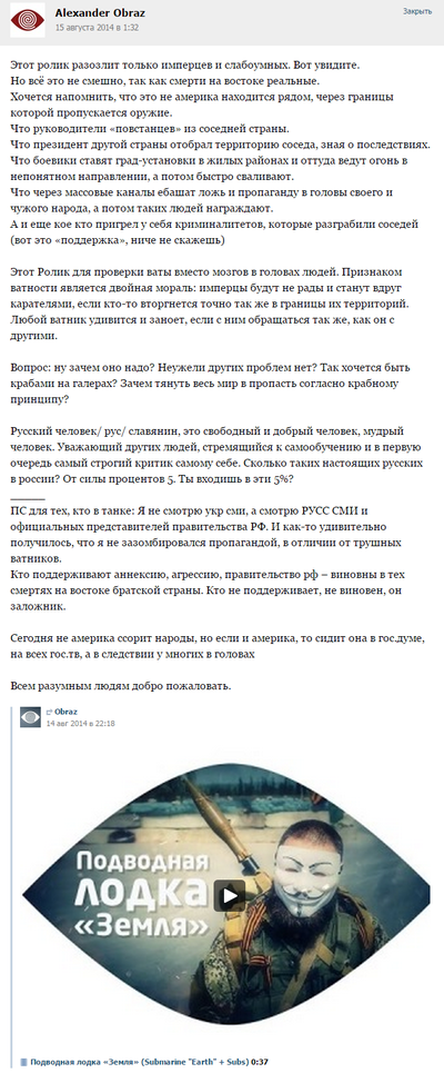 Ну а зачем на личности то переходить? Если пост сделан украинцем, не следует считать его априори не верным или пропагандистским. Лишний раз опровергая этот пост, те у кого рвёт пуканы его ещё раз подтверждают.
