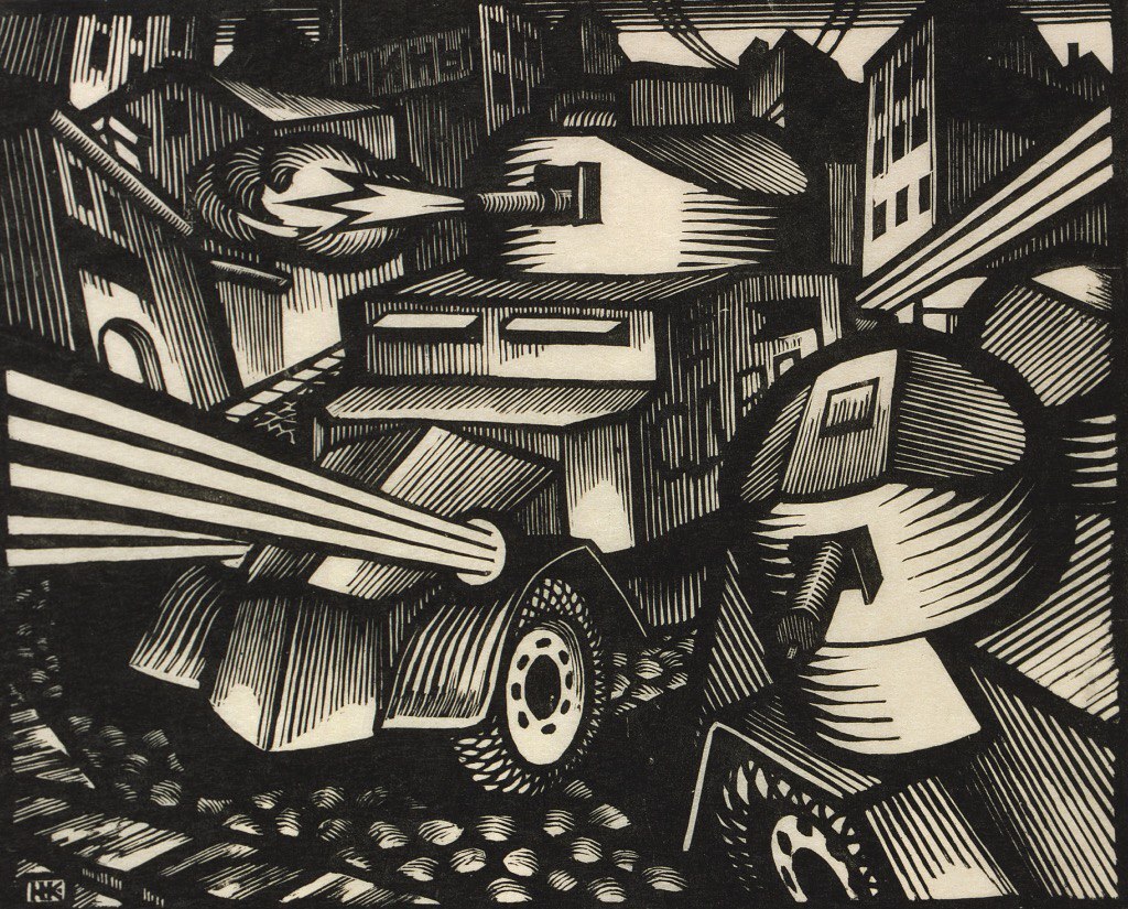 9 CollectorBeauty Н. Н. Купреянов, «Броневики», 1918 г 1 год назад Картина выполнена в технике ксилографии — гравюра на дереве. В картине отражены мощь военных машин, революционная стихия. Арт Военная техника Ксилография Картина Ещё 0