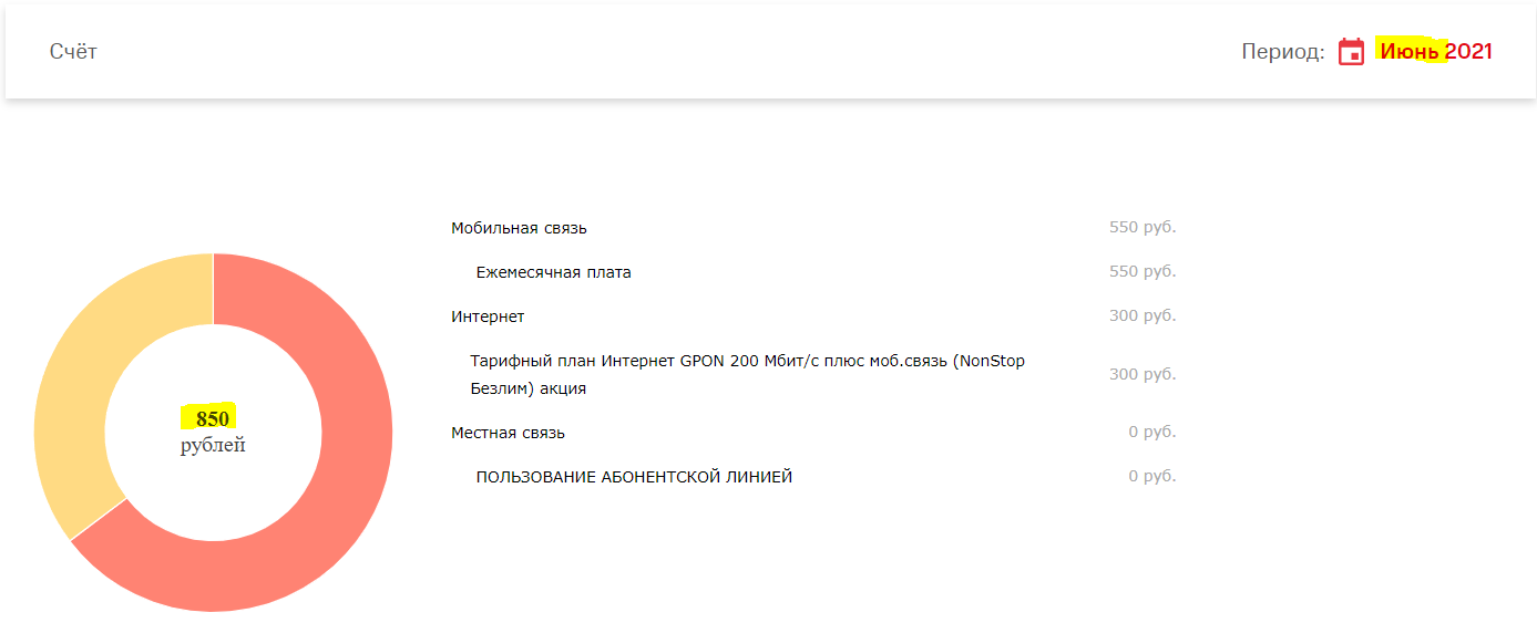 Мой текущий тариф: безлимитный интернет на телефоне, 500 минут и 500 смс, а также домашний интернет 200Мбит/сек. Скрин из кабинета сделать не могу, поскольку сайт на этом этапе показывает