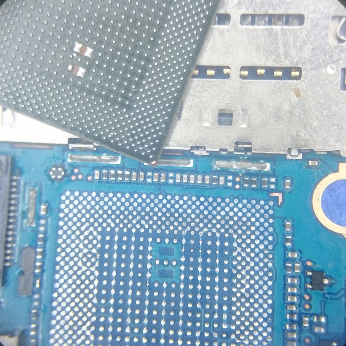 Припаиваем на место процессор, проверяем не загнулся ли он в процессе и потом уже устанавливаем флешку.