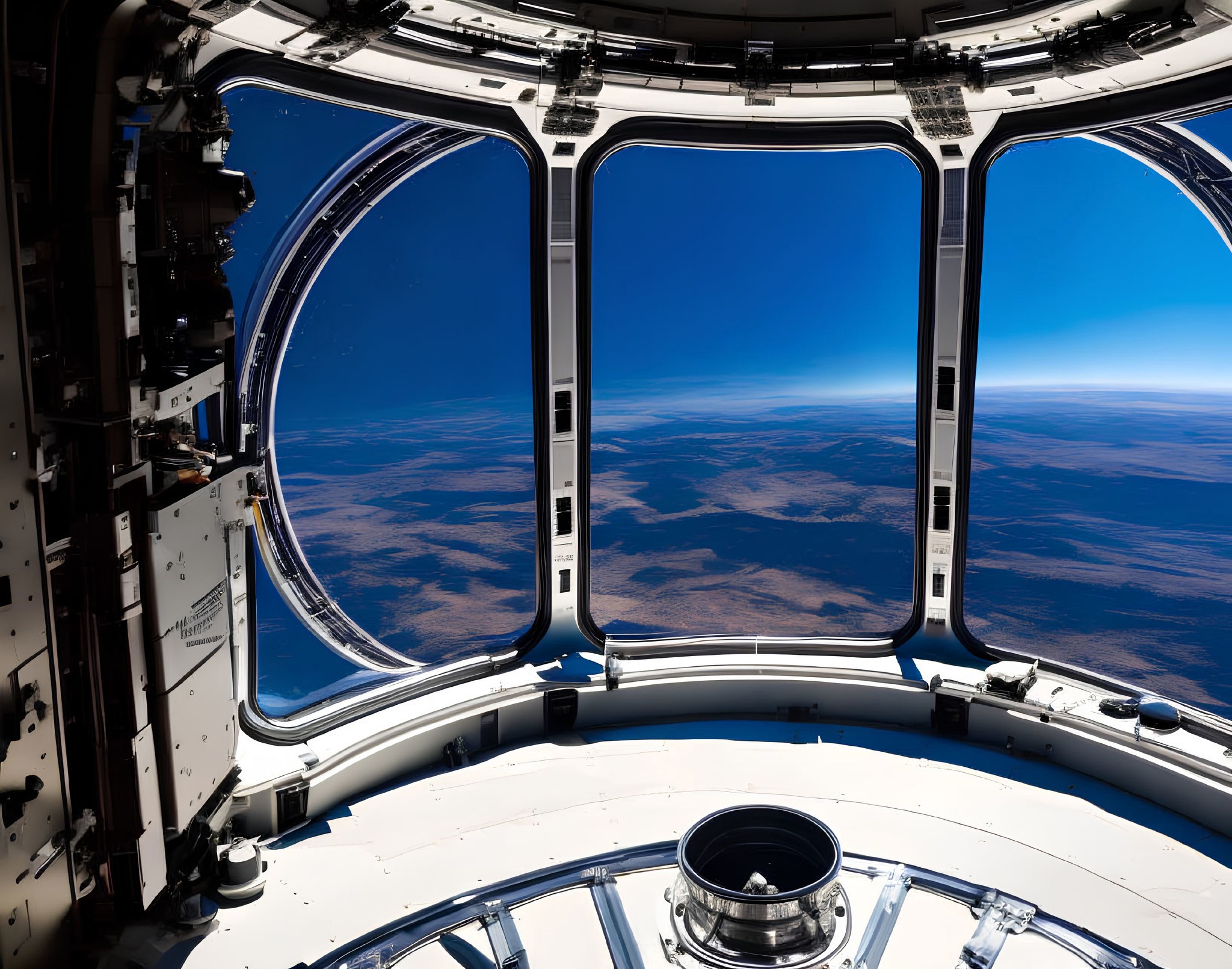Prompt:  View of Venus from the observation window of the ISS Dome module