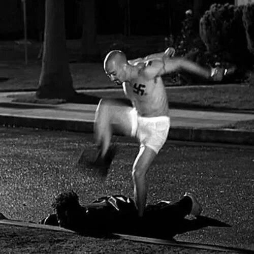 Все что успела оглянуться на чей то окрик, отскочить и как треснуть УШЛЕПКА по самокату руками. Дебил в кустах в соплях и слезах, что вы наделали, вы не имеете право. Я чуть не поперхнулась, я в 0.01 секунде от того что б быть под колесами, а это чудище винит кого то.