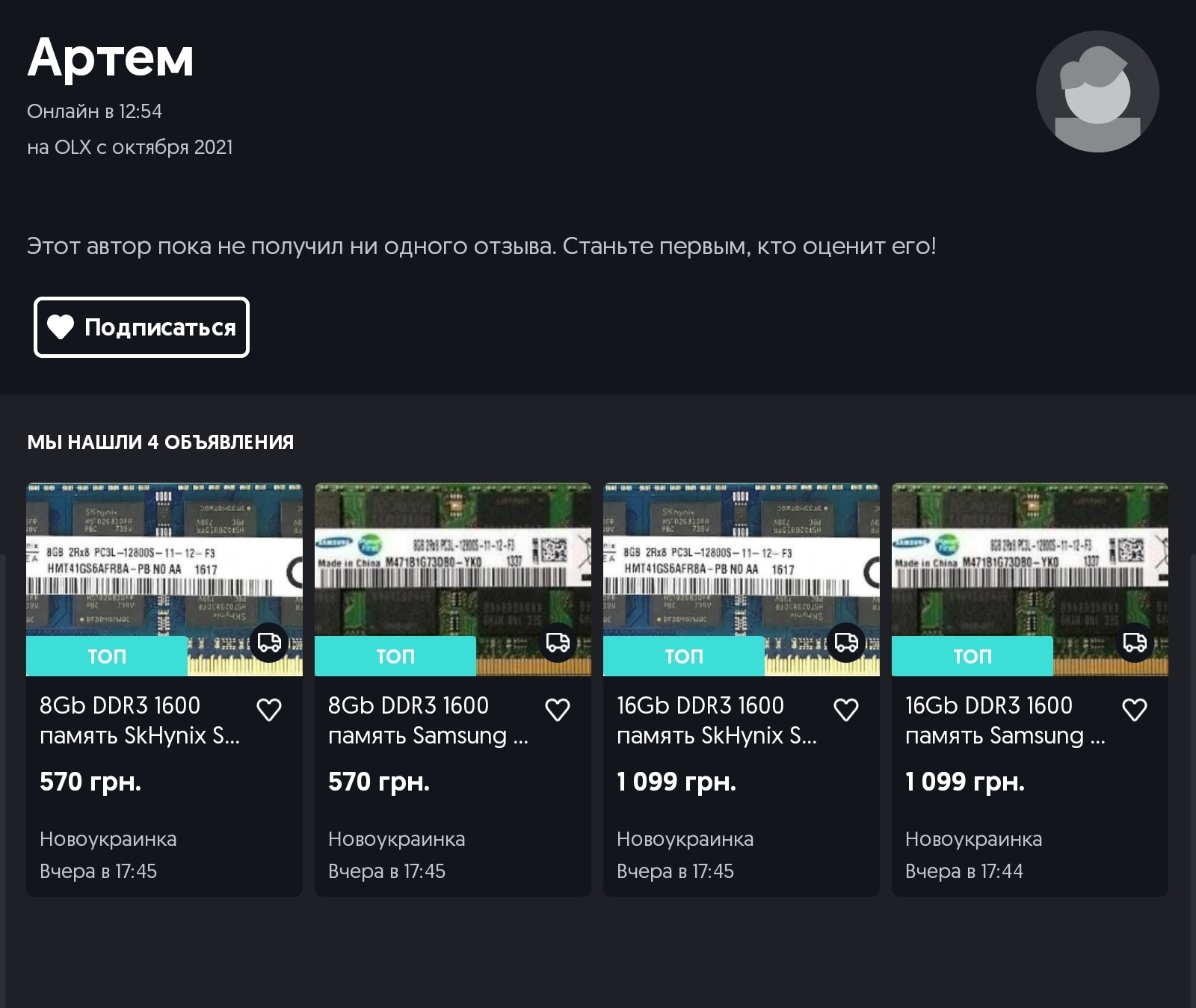 Данный способ развода населения для меня существует с 2019 года. По крайней мере в том виде, который опишу. Некий индивид в феврале 19 года попытался меня кинуть на оперативку для ноутбука. Вот история.
