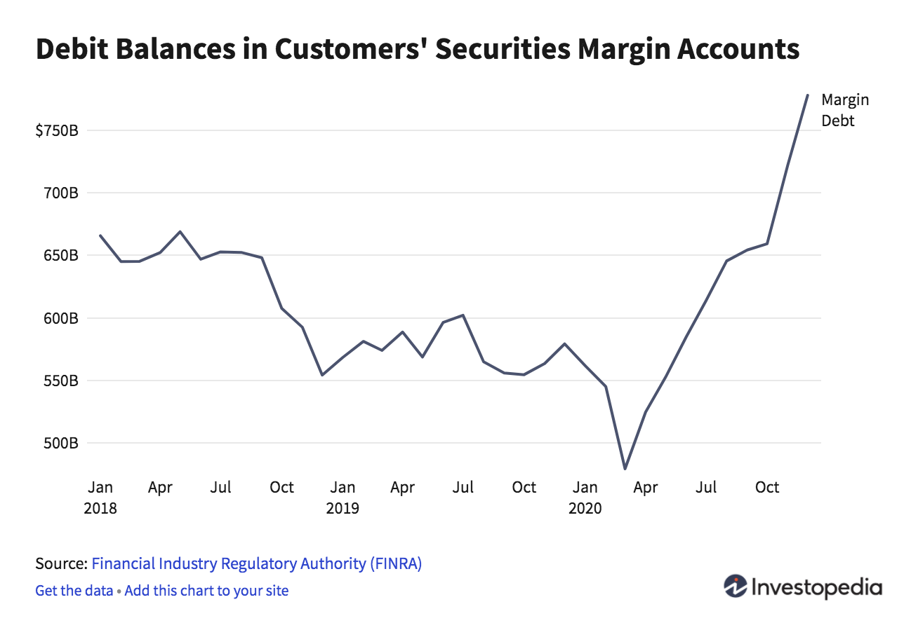 Уровень маржинального кредитования достиг исторического максимума, а активность розничных инвесторов на рынке опционов за последний год выросла в 8 раз. Теперь они буквально двигают целые индексы, о чём подробнее написано в статье «How the Little Guy Is Fueling the Stock Market’s Wild Ride» на Barron's.