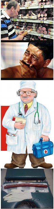 Ахахахаха, нененене, заходит в магазин такой за колбасой и вспоминает, что колбасу забыл в проктологии. А еще и оформиться.