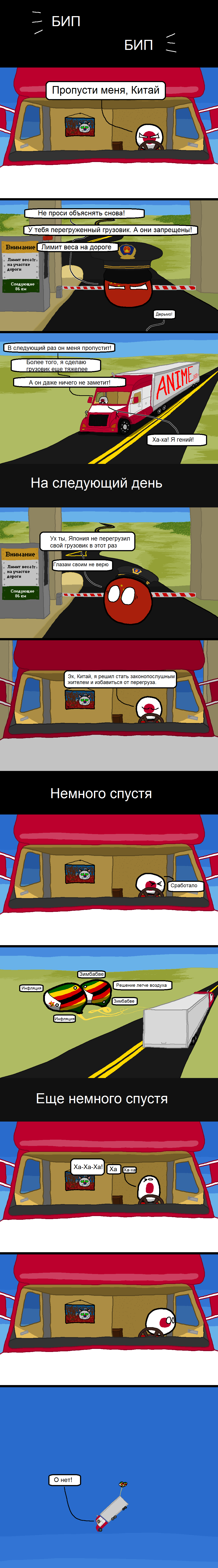 Зимбабве легче воздуха потому, что там инфляция. Он как-бы парит в воздухе. Но деньги обесцениваются там настолько быстро, что через несколько часов после прохождения японией таможни Зимбабве утянуло грузовик наверх.