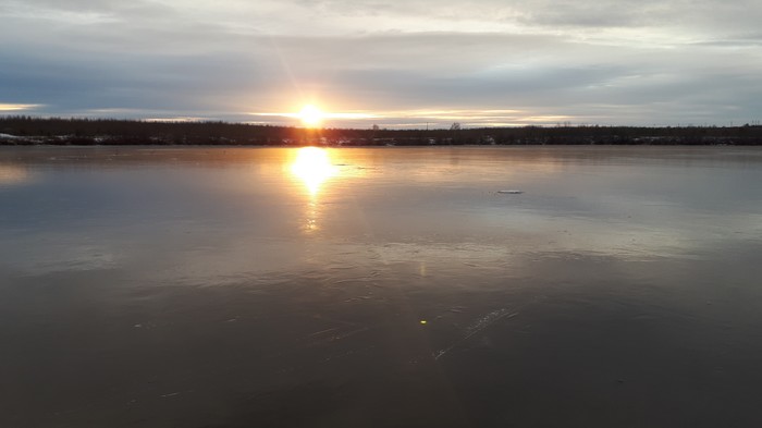 Но самое интересное было потом. По периметру Исинский вышел 12км, что мне показалось мало. Я спустился за плотину пешим ходом и вышел на лёд Исы. Походил - держит. Поскользнулся, бахнулся всей тушей - держит. Ну, ок - погнали. Разогнался и тут лёд подо мной затрещал. Звук был такой, что становилось ясно: остановись я хоть на секунду и быть мне водоплавающим. Твою мать!!! Краем глаза вижу вдоль берега полосу открытой воды, треск усиливается, я еще ускоряюсь и...