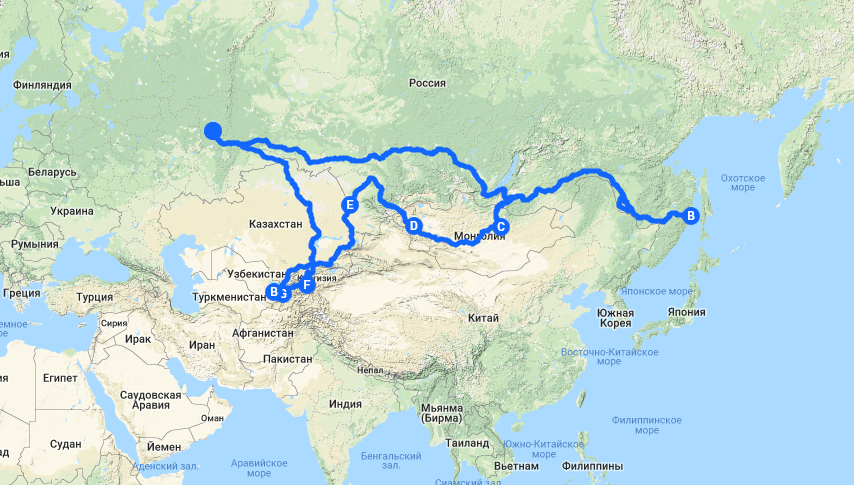 За почти год, что прошел в ожидании путешествия, к основному плану добавилась куча дополнительных - маршрут оброс массой хотелок, которые тоже разделились по приоритетам. Обратно я решил ехать через Монголию и Казахстан. А перед этим, еще и побывать в Китае. Так сложились основные чекпоинты: Байкал, остров Сахалин, остров Шикотан, Китай, Монголия, Казахстан. Ну и остальное как уж получится.