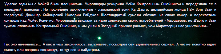 Крайтону предстояло сплотить представителей разных космических рас, которые волею судеб оказались «в одной лодке», и превратить эту шайку в настоящую команду, в экипаж корабля — левиафана Мойя. (Кстати кто не в курсе, корабль живой).