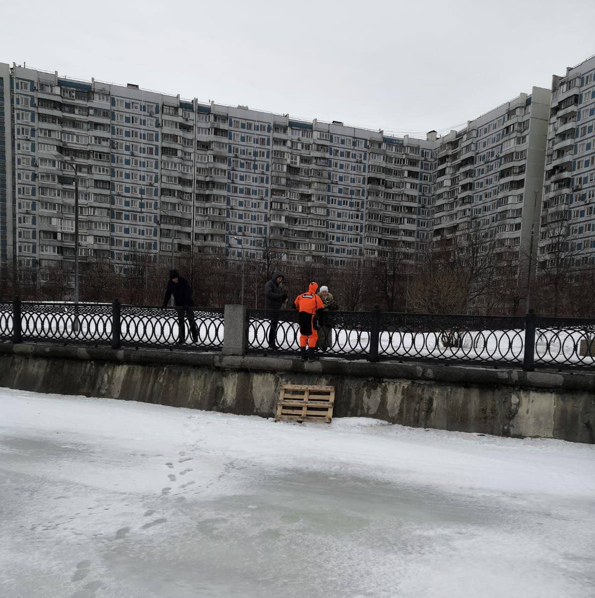 На льду Москвы-реки заметили котика, на которого напали вороны
