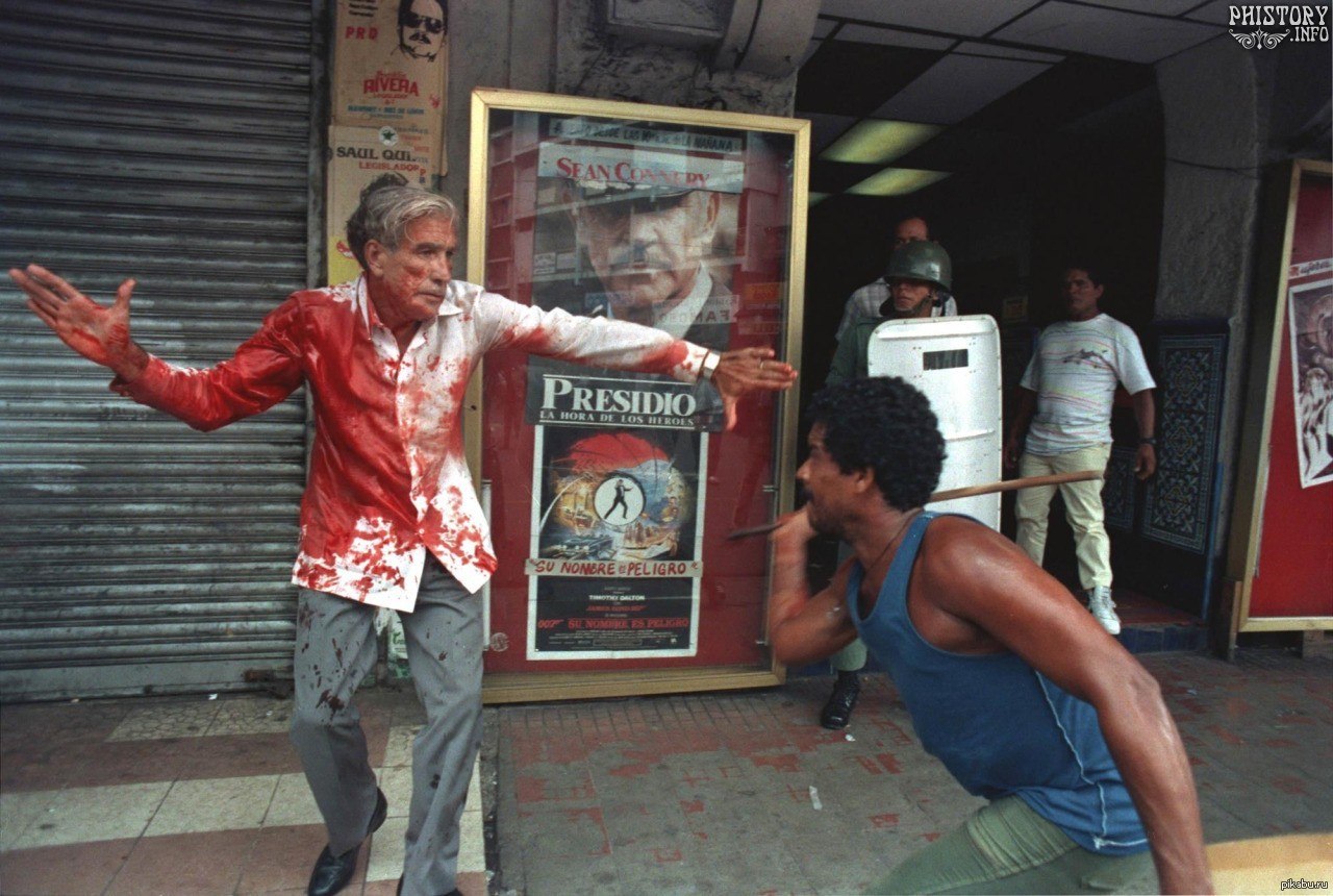 54 2283 На ночь. 10 лет назад Сторонник президента Мануэла Морено избивает кандидата на пост вице-президента Гильермо Форда. Панама. Республика Панама. Май 1989 года. Описание в комментах. Photo history ВКонтакте Панама