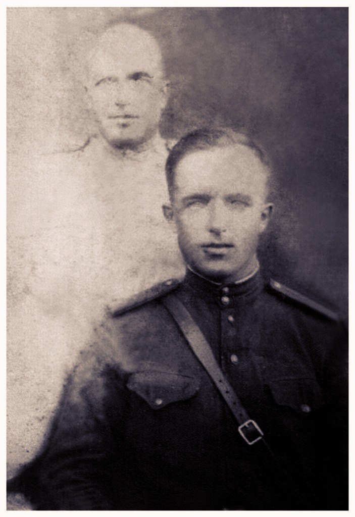 В семейном архиве у меня хранятся две фотографии брата прабабушки со стороны мамы Ададурова Дмитрия Николаевича, сделанные в годы войны. На одной фотографии был Дмитрий Николаевич с двумя сослуживцами.