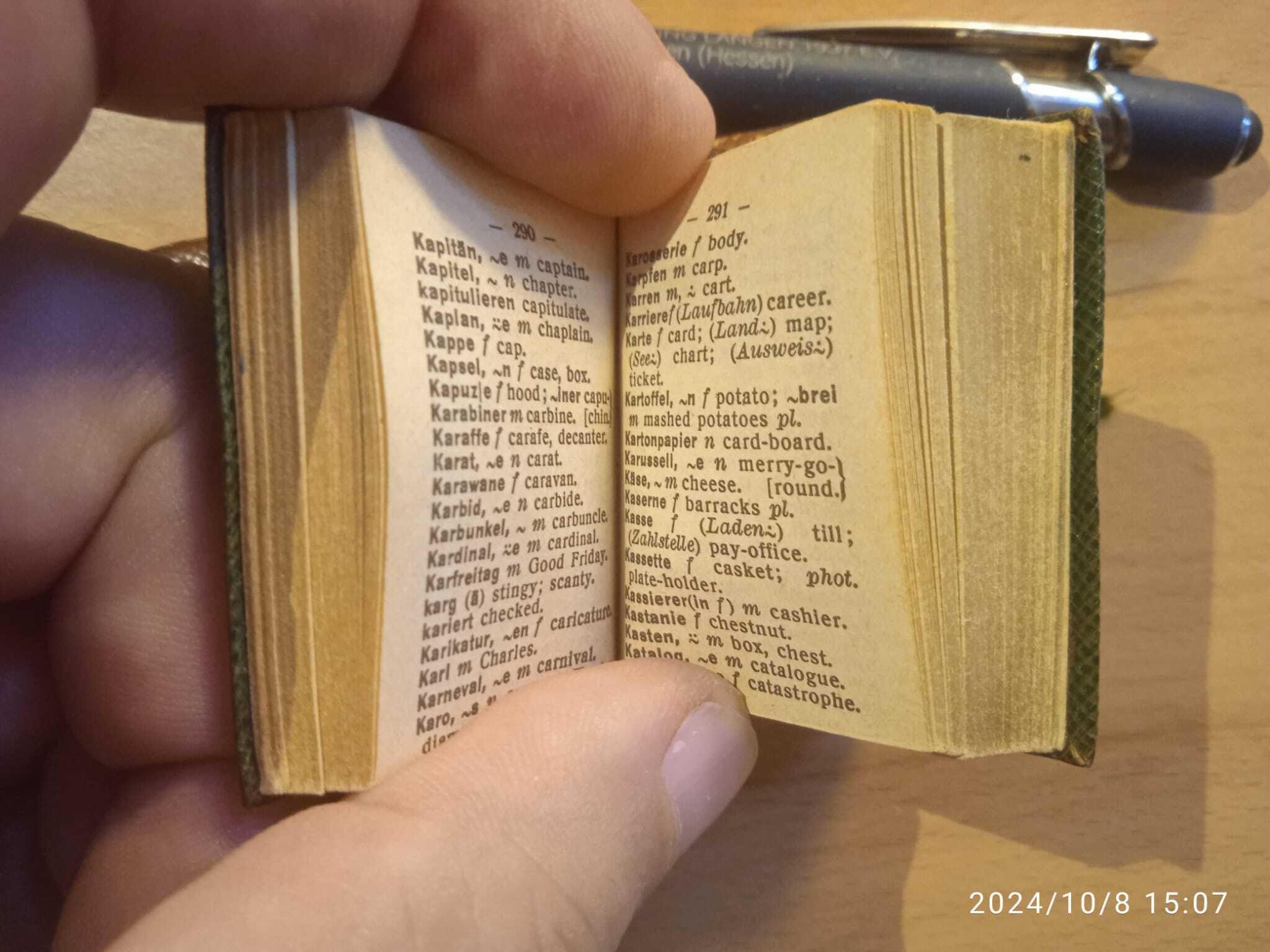 На оценку! Профи- букинисты, помогите оценить ! два словаря, немецко-английский, и англо-немецкий. каждый примерно по 600 страниц. состояние самих томиков очень удовлетворительное, коробка вкладыш конечно натерпелась в жизни. размеры можно сравнить с ручкой. ручка стандартная