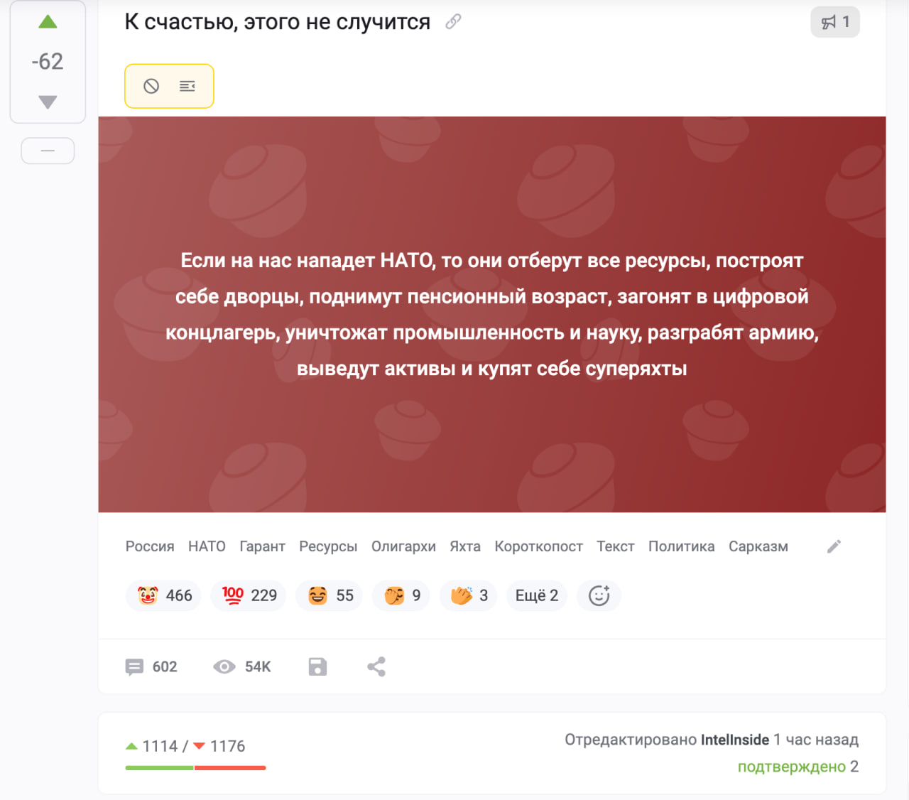 Пост, после стремительного выхода в горячее, улетел в лютые минуса буквально за несколько минут. Наверное совпадение