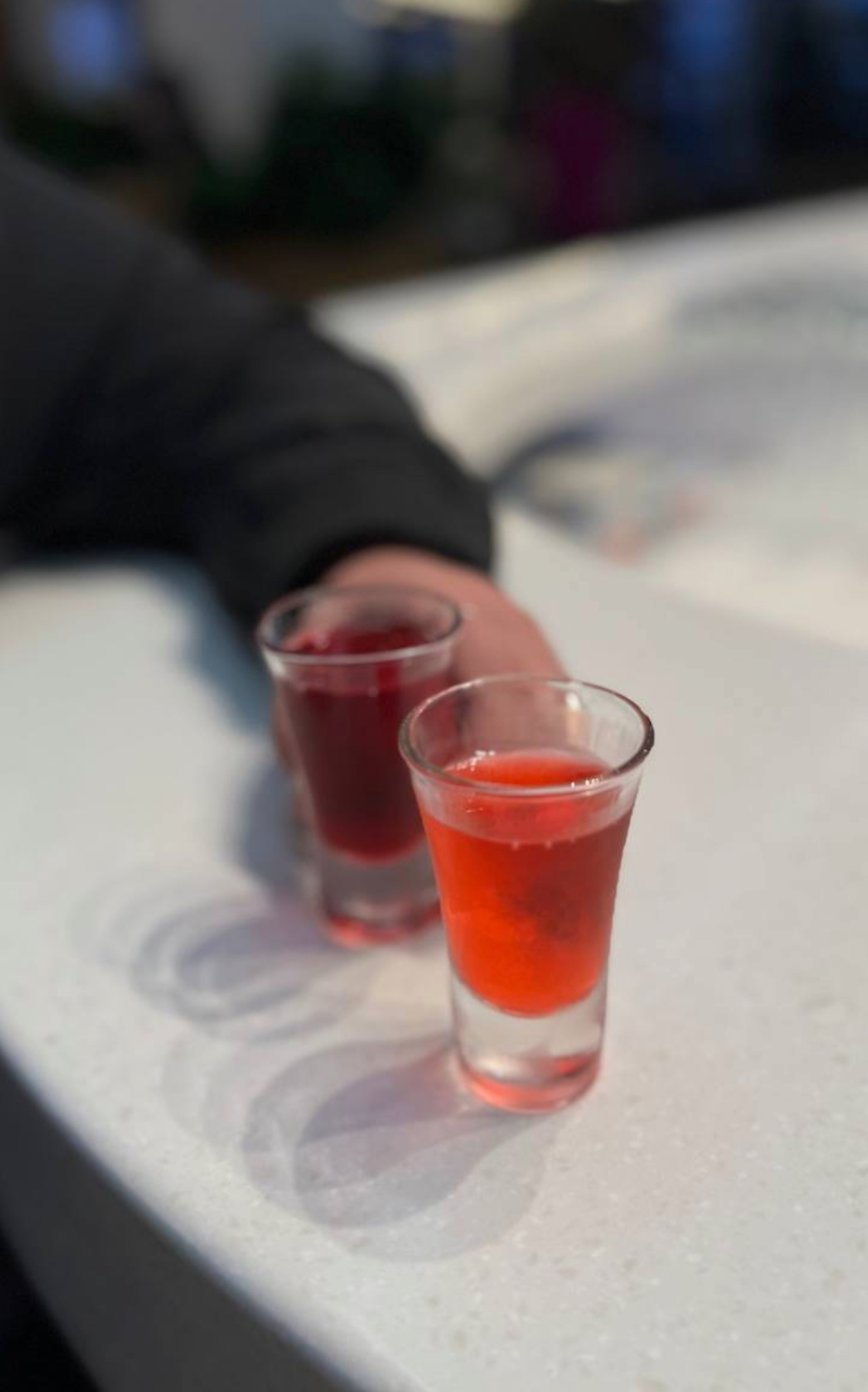 Погуляли немного по опушке, так как до закрытия подъемников оставалось всего 40 минут, и успели залететь в ресторан 601, который как раз там и находится) взяли по настойке - отметить это дело) я взяла классическую малину, а Аринка местную клоповку (это ягода такая)) хотя пахнет мне не очень, (но все говорят, что это самовнушение, я не согласна) но было вкусно) и дорогоооо! 2 настойки за 1.050 рублей? Ало)))😂😂 вы куда?)))