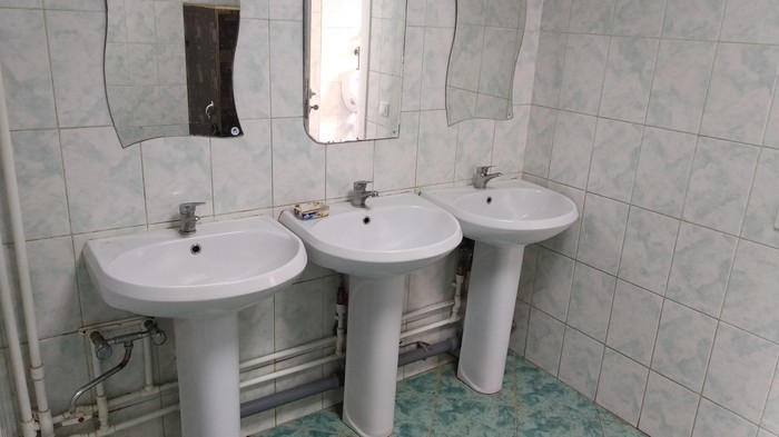 Примерно с год-полтора назад руководство решило улучшить быт трудяг, отремонтировали туалеты, умывальники, душевые, столовую.