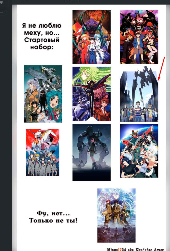 Было бы странно если бы я в мем запихнул все известные меха тайтлы. Как написано в посте: "Не воспринимайте всё слишком серьёзно!"