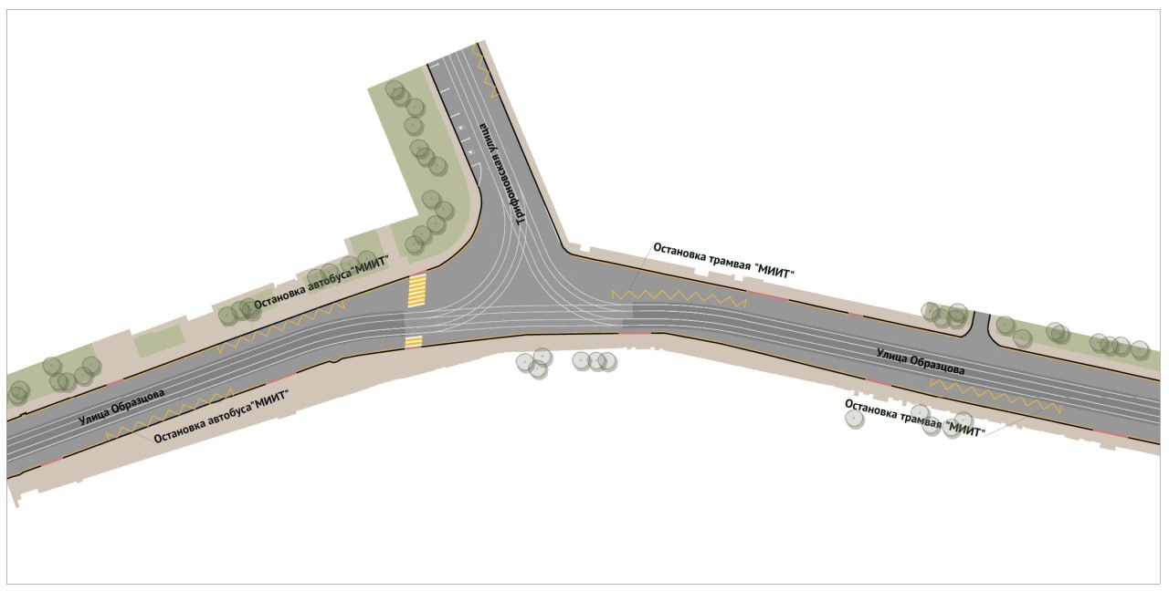 Однако,детально попытавшись разобраться, как можно обезопасить это место, я обратил внимание, что на Т-образном перекрестке всего один (!!!) переход с Трифоновской к зданию МИИТа. Ну то есть, если ты идешь по улице Образцова по одной из сторон, то Трифоновскую ул, законно, не нарушая ПДД, пересечь невозможно, это крайне странно и на это никто до сих пор не обратил внимание! Но авария произошла не с этой стороны перекрестка, а на единственном, размеченном переходе.