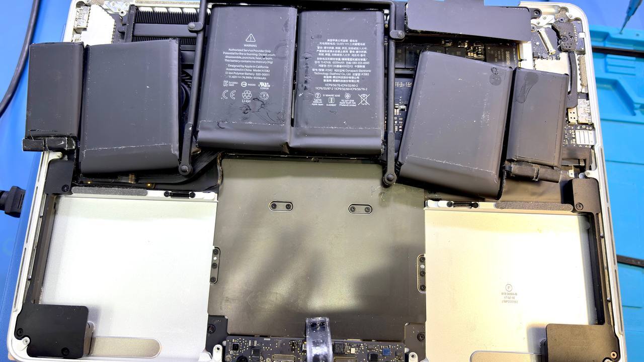В A1502 батарея приклеена к топкейсу, поэтому действуем осторожно.