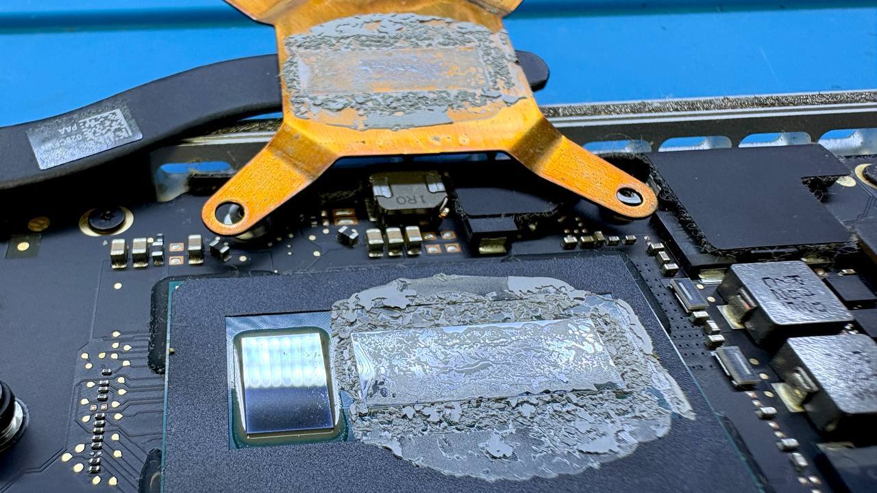 Пока экран снят, самое время добраться до платы: очищаем кулер, обновляем термопасту, продуваем радиатор.