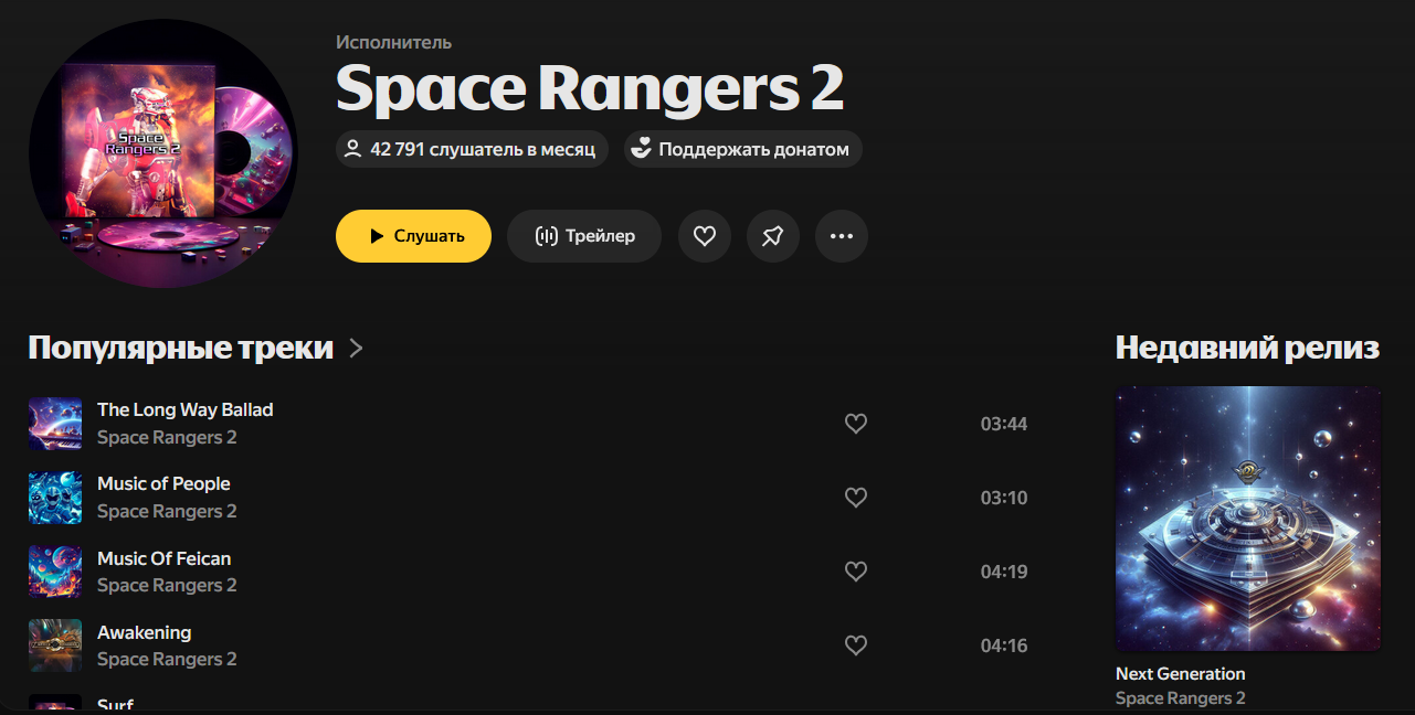 Всё это так долго и подробно я рассказываю вот почему: мы обнаружили такие аккаунты исполнителя на популярных стримингах: