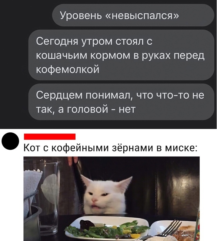 4142 PodvalModerov 2 года назад Гильдия Воров Пикабу На том свете отосплсь1 Кот Кошачий корм Кофе Юмор Повтор Недосып Картинка с текстом 62 2 2 Ещё 0
