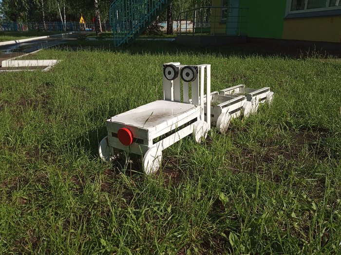 10 AlohaChelny Хобби На участке детсада. 6 лет назад Украшаем как можем. Вот такой паровозик получился. В вагонах цветочки посадили. [моё] Своими руками Клумба Игрушки Из подручных средств Детский сад