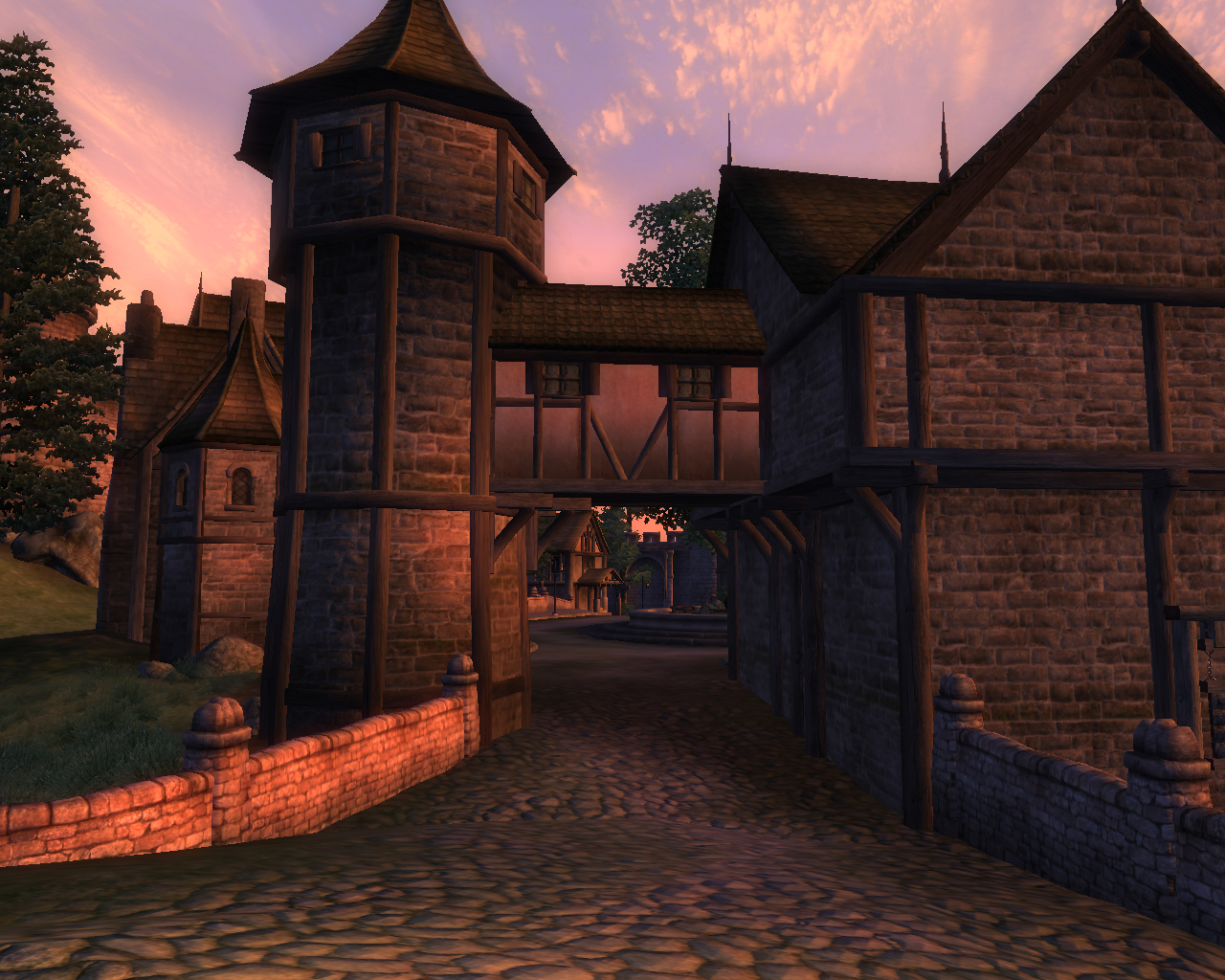 Сквозь арку проглядывает площадь Великого дуба, на которой расположены отделения гильдий и особняки самых богатых горожан.