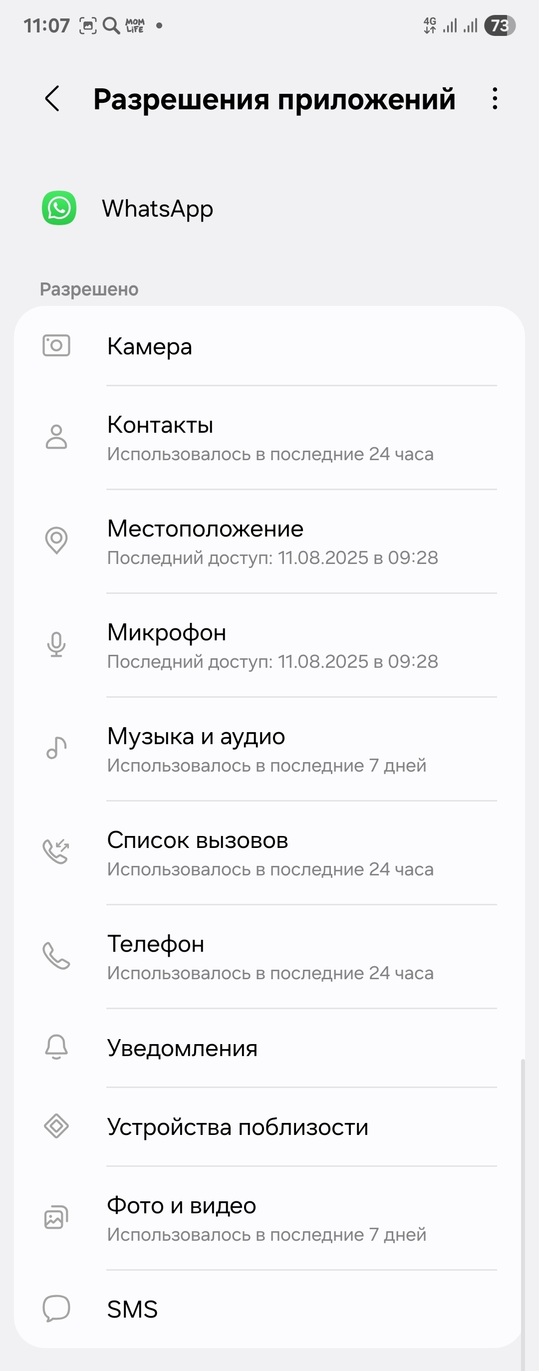 я ватсапу дала все разрешения, он шерстит телефон даже когда я не захожу в wa.