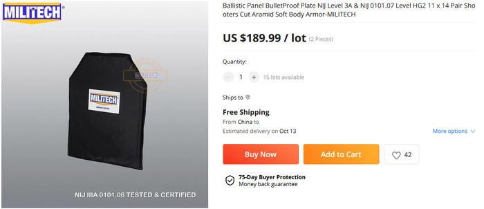Это тоже реально защищающая броня, но тут появляются ньюансы заказа. Очень многие страны ограничивают импорт твёрдой брони. Соответсвенно пересылка идёт спец курьерами, типа ТНТ, ЕМС и т.д. Это сделанно специально, чтобы посылки прошли через обязательную процедуру декларации и в случае запрета были возвращенны продавцу. Тут тоже есть свои особенности, потому как такая защита есть из стальной пластины с кевларовыми слоями или из керамических пластин в том же кевларовом конверте. (не обязательно кевларовым, но из ткани со схожими свойствами, но другим брендом)