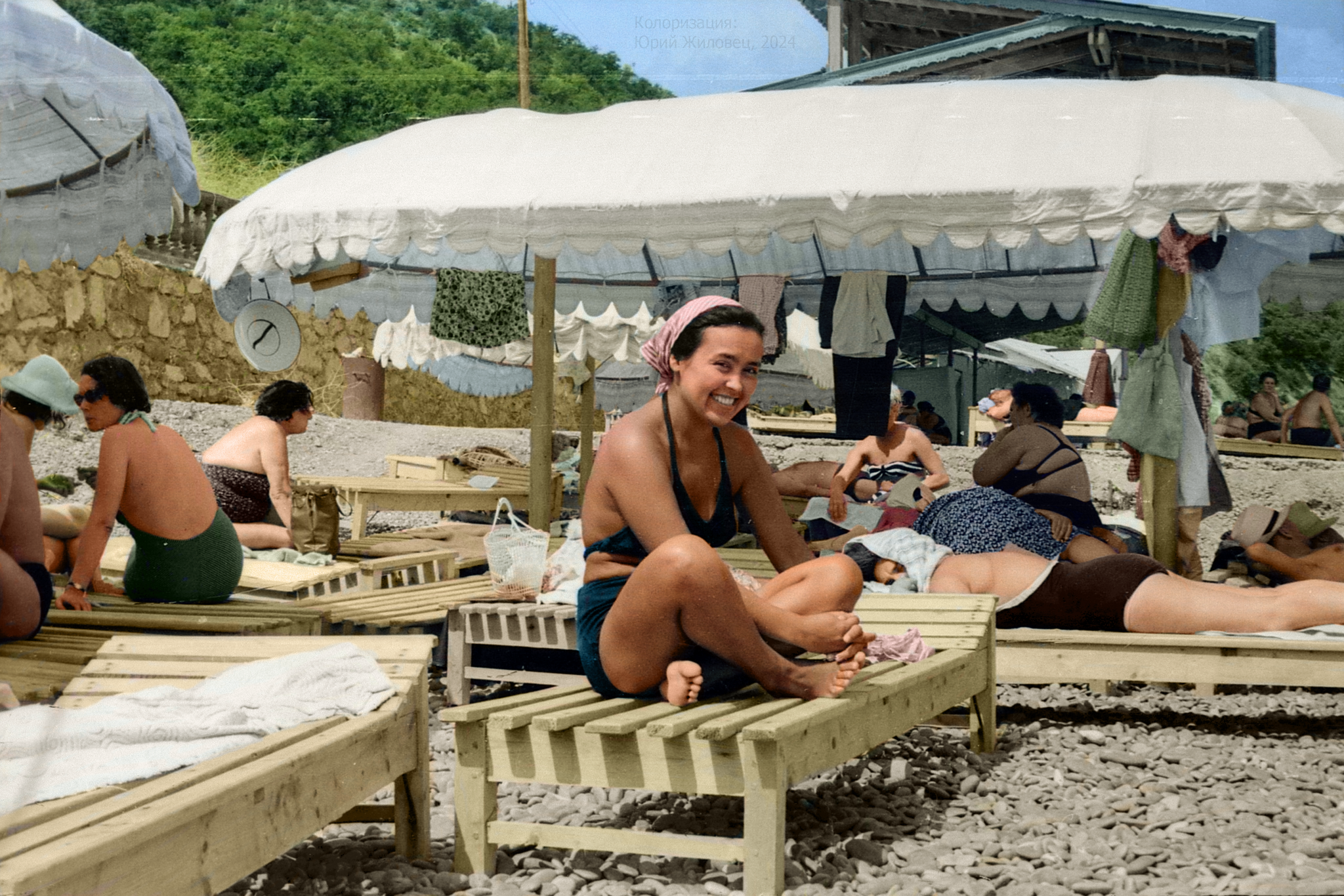 85 zorrodetarde Республика Крым Серия Старинный Крым На Золотом пляже 1 год назад Курпаты, 1959 г. Колоризация [моё] СССР Фотография Старое фото Колоризация Крым 50-е Ялта Пляж Девушки 5 Ещё 0
