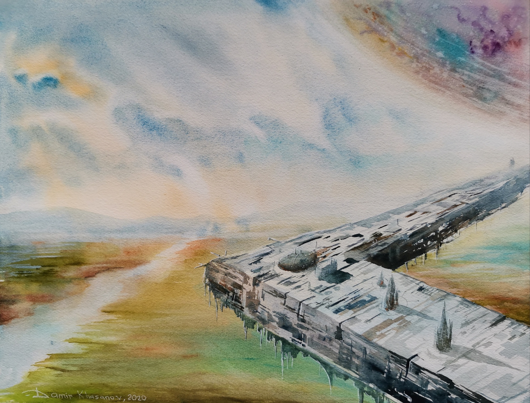 Рисовал пейзаж и тут появился он - Наблюдатель! Пейзаж сразу преобразился, появилась интрига... Или мне это только кажется?